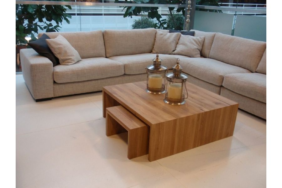 De aan de zijkant gesloten salontafel, kan geleverd worden met bijzettafel (zie afbeelding), afmeting 37H/50L/30D cm.