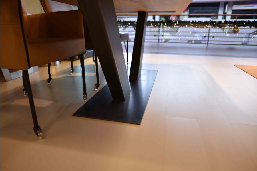 Om de tafel een wat modernere uitstraling te geven zet u de poot iets meer aan de kopse kant van het tafelblad.