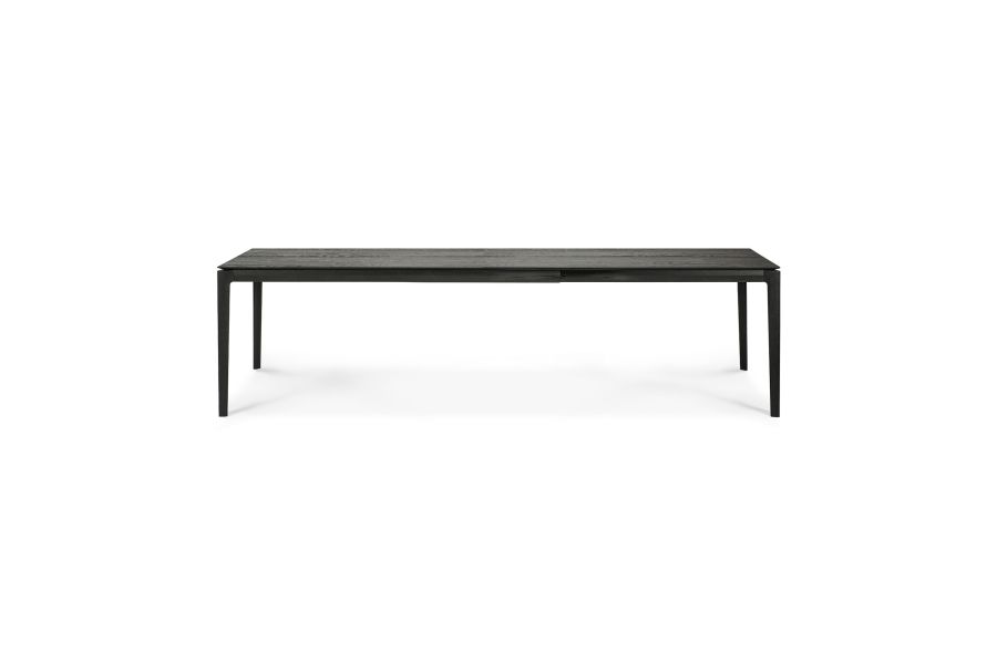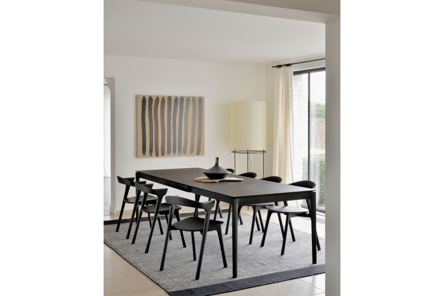 Onze iconische Bok tafel, uitschuifbaar zodat er nog meer mensen samen kunnen komen. De luchtige vorm en solide constructie van deze zwarte massief eiken uitschuifbare eettafel maken het tot een tijdloos meubelstuk en een bijzonder design om eindeloos van
