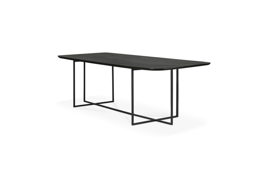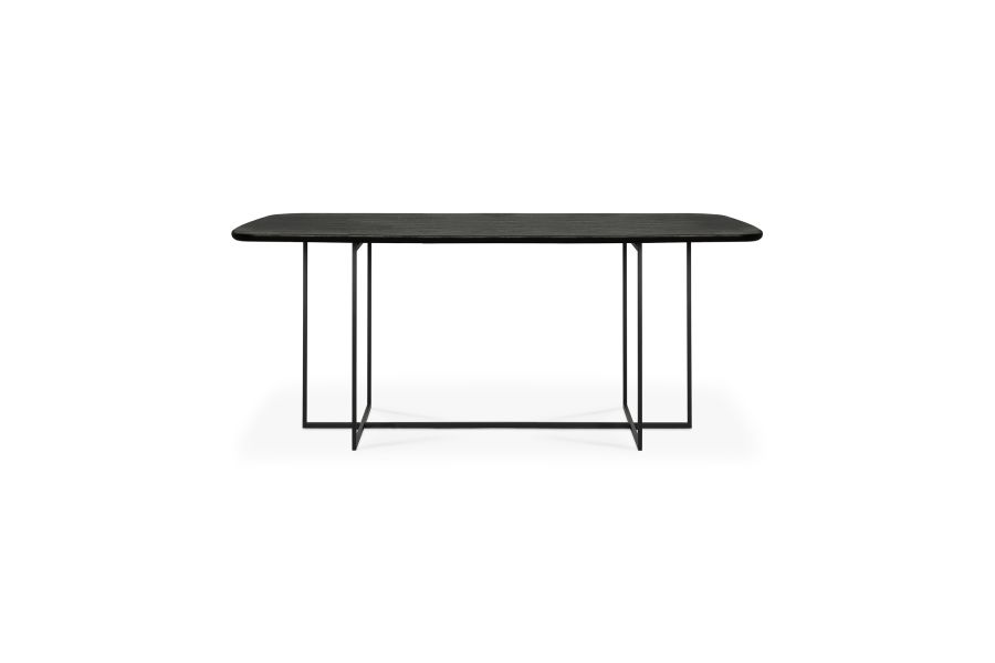 Kom samen aan de Arc eettafel, zij het voor werk of plezier. De Arc combineert een taps toelopend zwart metalen onderstel met een een licht afgerond tafelblad uit zwart eikenhout, afgewerkt met een geborstelde vernislaag. Dit ontwerp heeft een verfijnde v