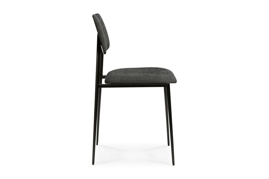 Een luchtig en hoekig metalen silhouet vormt de basis van dit minimalistische ontwerp. Door een balans te creëren tussen stevigheid en zachtheid hebben we een elegante en comfortabele eetkamerstoel weten te ontwikkelen, die bij elk interieur past.