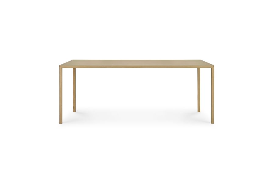 Het tafelblad lijkt moeiteloos te zweven boven de strakke, afgeschuinde poten. De eiken Air is een sterke en slanke eettafel vermomd in een eenvoudig, strak en minimaal design. Geïnspireerd door de lichtheid van het gelijknamige bed.LET OP; de voorraad is