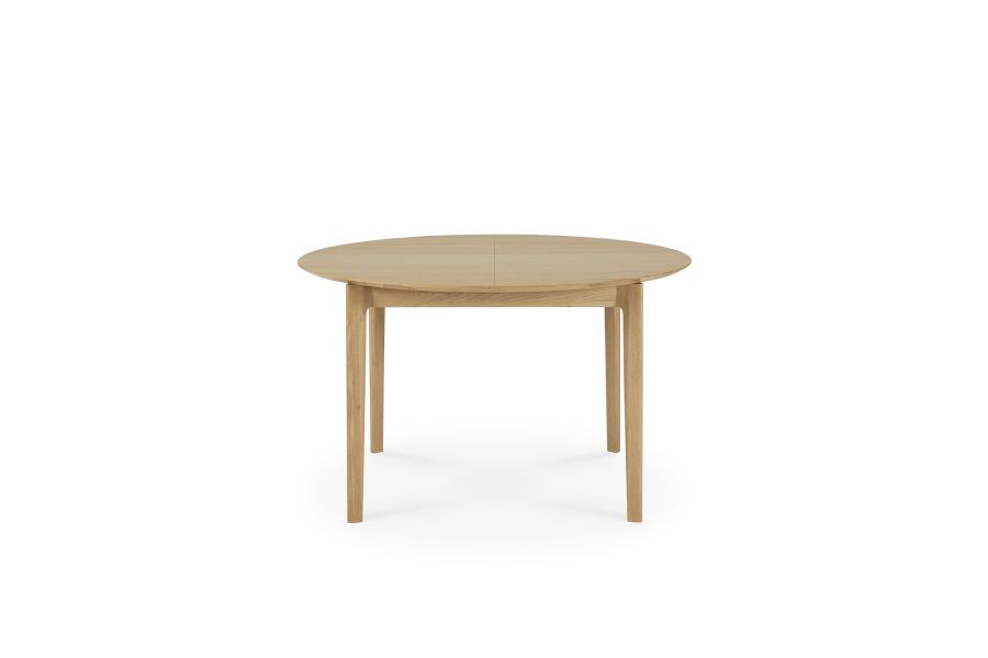 De Bok uitschuifbare, ronde eettafel uit massief eiken, is de ideale oplossing in een kleinere ruimte. Deze ronde tafel voor vier personen kan eenvoudig verlengd worden zodat er meer mensen aan kunnen schuiven. De iconische luchtige vorm en de solide cons