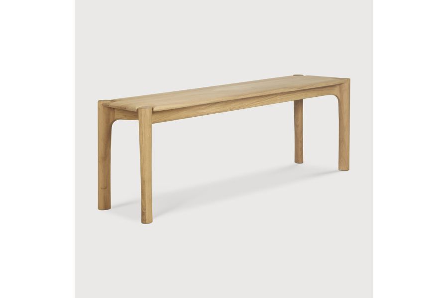 De PI-collectie eert het ontwerp van de natuur door de kracht, rondingen en lijnen te behouden, zoals de natuur het bedoeld heeft. Interessante vormen worden ontdekt in deze strakke en stijlvolle, gepolijste imperfecte afwerking. Elk PI-item wordt met de hand afgewerkt om ervoor te zorgen dat het individuele karakter van het hout gerespecteerd wordt. De PI bank past goed bij de PI eettafel, maar voegt bijvoorbeeld ook stijl toe als standalone in een hal.