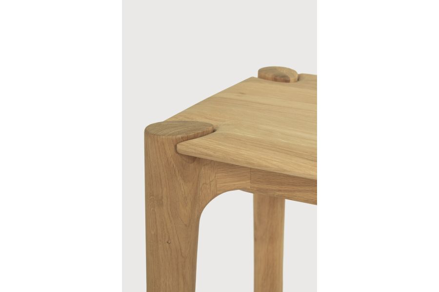 De PI-collectie eert het ontwerp van de natuur door de kracht, rondingen en lijnen te behouden, zoals de natuur het bedoeld heeft. Interessante vormen worden ontdekt in deze strakke en stijlvolle, gepolijste imperfecte afwerking. Elk PI-item wordt met de hand afgewerkt om ervoor te zorgen dat het individuele karakter van het hout gerespecteerd wordt. De PI bank past goed bij de PI eettafel, maar voegt bijvoorbeeld ook stijl toe als standalone in een hal.