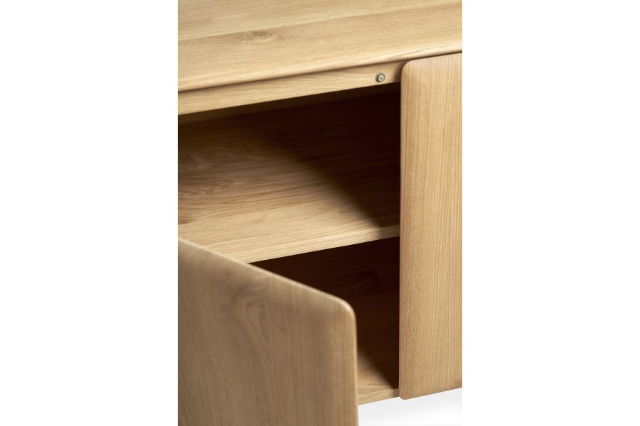 De PI-collectie bij Ethnicraft eert het ontwerp van de natuur door de kracht, rondingen en lijnen te behouden, zoals de natuur het bedoeld heeft. Interessante vormen worden ontdekt in deze strakke en stijlvolle, gepolijste imperfecte afwerking. Elk PI-item wordt met de hand afgewerkt om ervoor te zorgen dat het individuele karakter van het hout gerespecteerd wordt. Het PI dressoir is opvallend en uniek, met praktische opbergruimte die een aanvulling vormt op verschillende ruimtes.