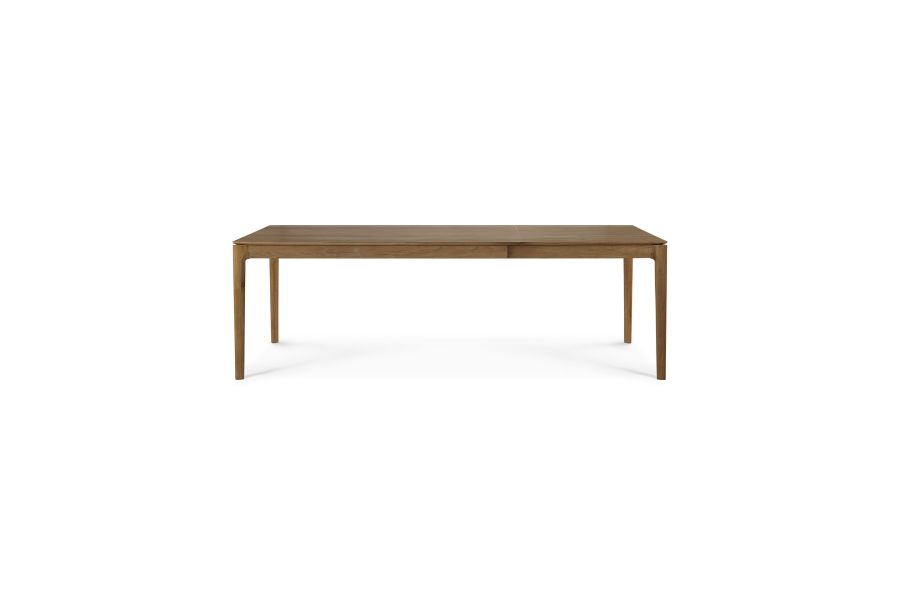 Onze iconische Bok tafel, uitschuifbaar zodat er nog meer mensen samen kunnen komen. De luchtige vorm en solide constructie van deze massief eiken uitschuifbare eettafel maken het tot een tijdloos meubelstuk en een bijzonder design om eindeloos van te genieten.