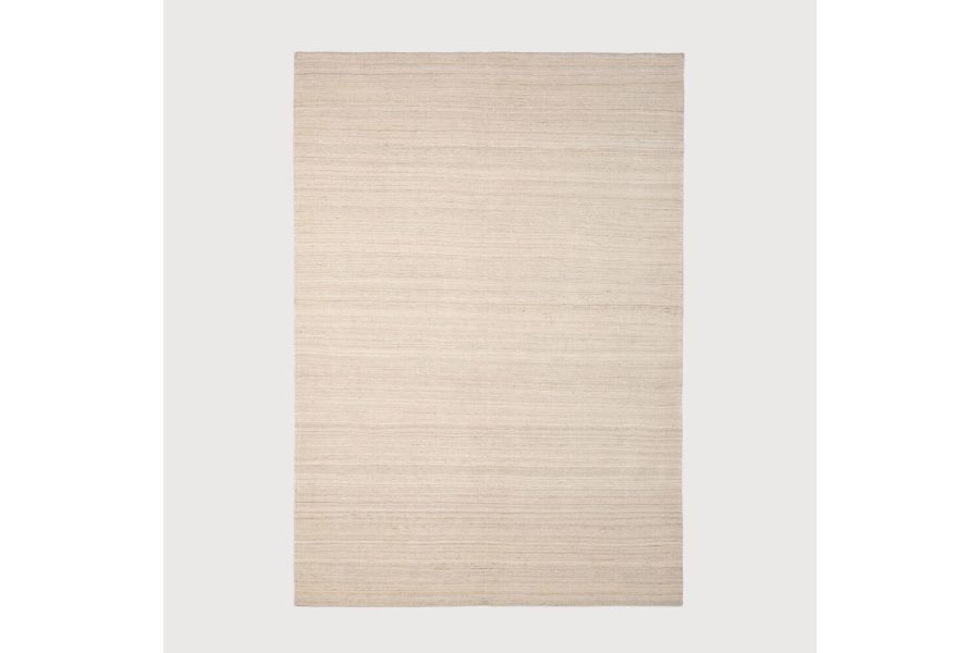 In samenwerking met Ashtari Carpets wordt elk kilim tapijt met de hand geweven volgens traditionele methoden en met zorgvuldig geselecteerde garens om een maximaal karakter en textuur te garanderen. Het natuurlijke oliegehalte van het garen van 100% schapenwol zorgt voor een warme en duurzame vloerbedekking.