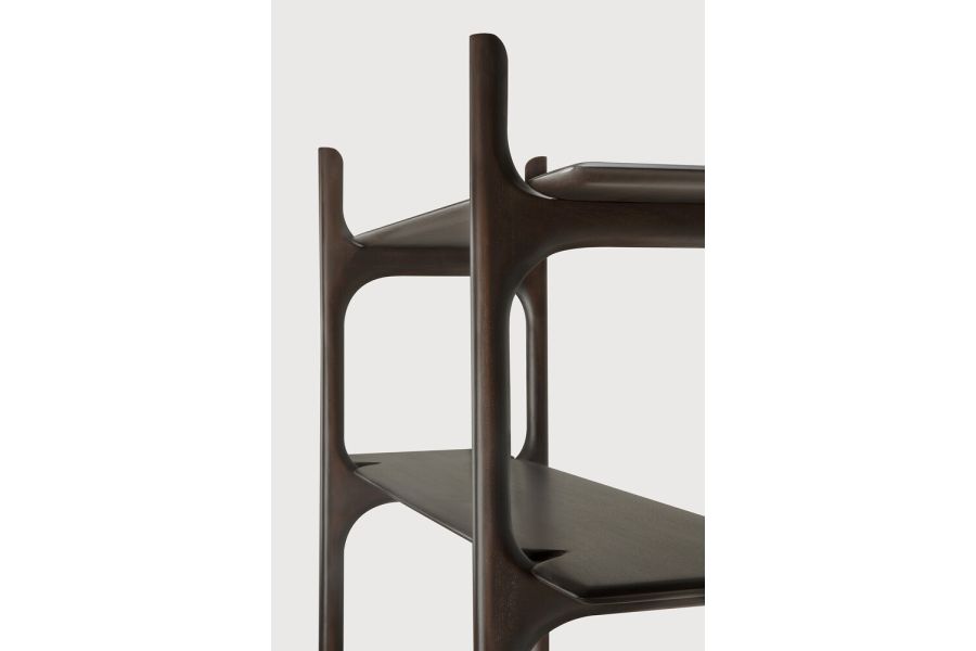 PI rekdoor Alain van HavreDe PI collectie eert het ontwerp van de natuur, door de kracht, de rondingen en lijnen te behouden, zoals de natuur het bedoeld heeft. Interessante vormen worden ontdekt in deze slanke en stijlvolle, gepolijste doch onvolmaakte afwerking. Elk PI stuk wordt met de hand afgewerkt om ervoor te zorgen dat het individuele karakter van het hout wordt gerespecteerd. Het PI rek biedt ruimte om gekoesterde aandenkens op te bergen.