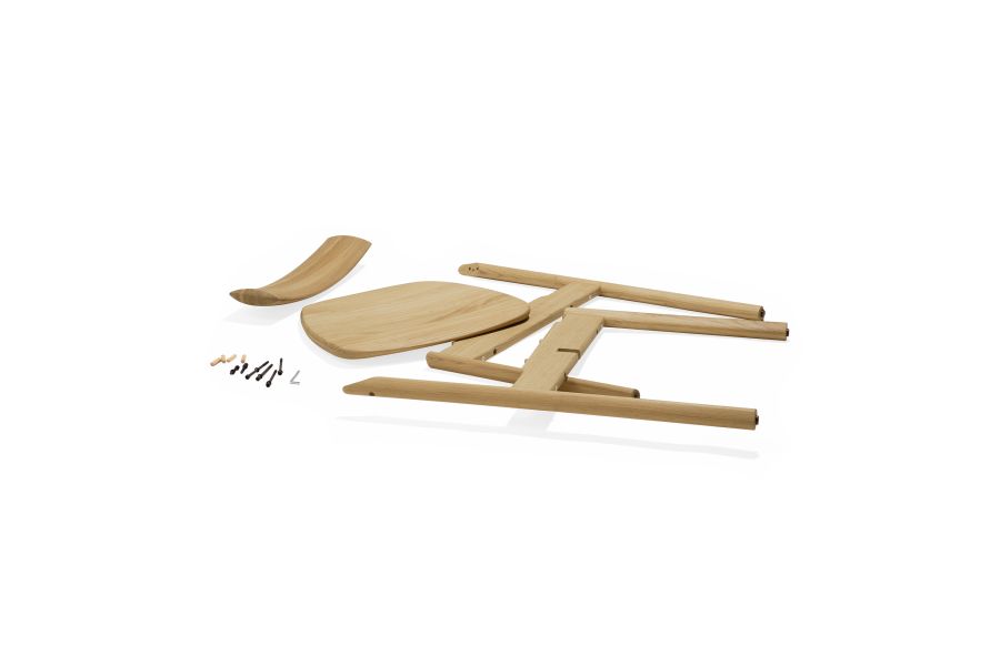 De Risu is ontworpen voor modern wonen en combineert comfort, eenvoud en verantwoorde productie. De gebogen rugleuning - een subtiele knipoog naar de organische vorm van rijst - biedt ergonomische ondersteuning, terwijl de massief eiken constructie zorgt voor blijvende duurzaamheid. De stoel wordt plat verpakt voor eenvoudige montage en is stapelbaar tot drie hoog. Een veelzijdig stuk met tijdloze aantrekkingskracht en uitzonderlijke waarde.