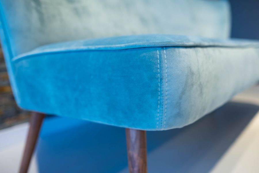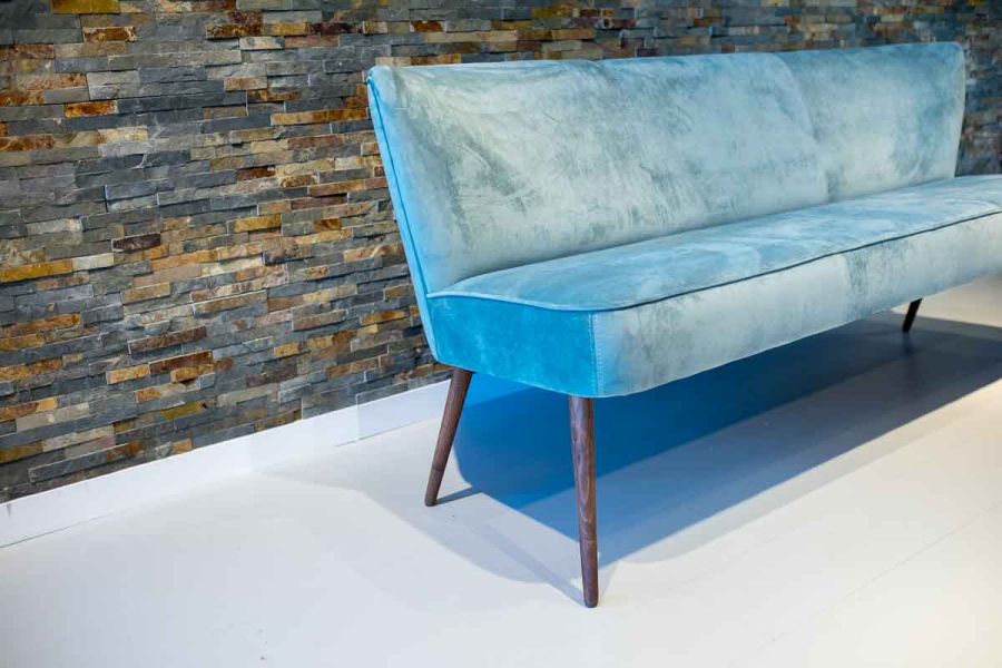 Hoe leuk! Dit Riva eetkamerbankje is te verkrijgen in verschillende maten en brengt meteen een gezellige sfeer aan tafel. Het blauwe bankje is gestoffeerd in een sterke velour stof en mogelijk in verschillende kleuren. Je kunt het bankje en de eetstoelen