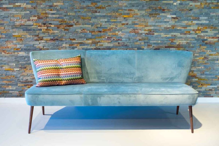 Hoe leuk! Dit Riva eetkamerbankje is te verkrijgen in verschillende maten en brengt meteen een gezellige sfeer aan tafel. Het blauwe bankje is gestoffeerd in een sterke velour stof en mogelijk in verschillende kleuren. Je kunt het bankje en de eetstoelen ook in andere stoffen of leer bestellen. Of maak een mooie combinatie.