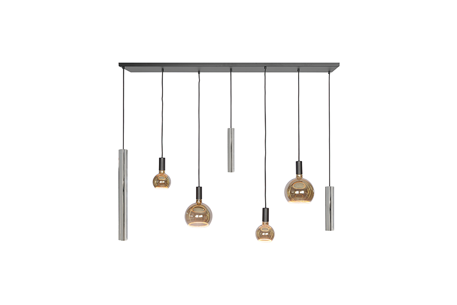 Riva hanglamp 150 cm 7 lampen vernikkeld |