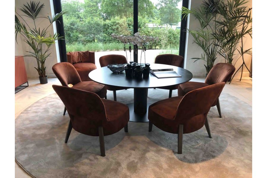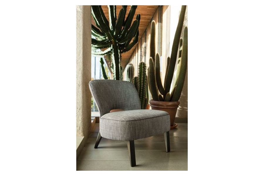 Ruby Ibiza lounge fauteuil, Gaaf, wat een vorm! Verkrijgbaar in veel verschillende stofsoorten en kleuren, zowel de poten als de fauteuil. Ook de bies kan worden aangepast. Afmetingen: 73B/78H en 80 cm diep.