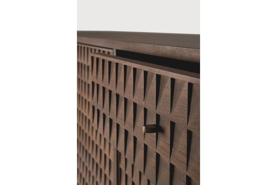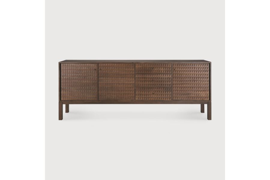 Sono buffetkastSono, waar door antiek geïnspireerd vakmanschap samenkomt met moderne elegantie. Deze exclusieve statement-collectie heeft handgesneden panelen en biedt functionele opbergruimte achter klassieke schoonheid. Delicate handgrepen van vloeiende