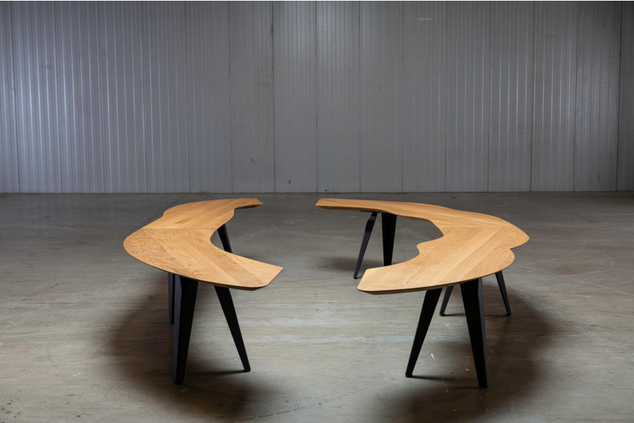 Het ontwerp van de Texel bank sluit naadloos aan op de organische vormen en het verfijnde onderstel van de Texel tafel. Of je nu kiest voor een rechte, verjongde, bolle of spitse randafwerking, alles is mogelijk. Het onderstel van de bank kan in dezelfde RAL-kleur als de tafel worden uitgevoerd, zodat je een harmonieus geheel creëert in jouw eetkamer.
